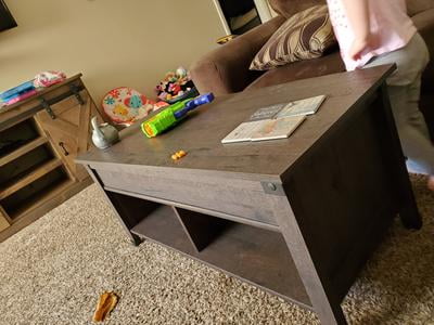 This instruction booklet contains important safety information. Enclosed back with cord access, which allows a convenient path for electrical cords. Find a huge selection of coffee & end tables for the lowest prices today! Display decor or books on the lower open shelves. To convert into a high desktop so that you can work properly on your laptop without bending over awkwardly, just gently. Washington cherry warm and rich, the washington cherry colour makes it easy to incorporate the carson forge collection into your home. Related articles to carson forge lift top coffee table Carson forge lift top coffee table. Bring that rustic style into your living room. It's a beautiful coffee table that would easily go well in any living room. Whatever it can be, this awesome sauder. The top lifts up and forward creating a multipurpose work surface so you can work, browse online or eat dinner while relaxing on your couch. I would recommend having two persons do the setup.