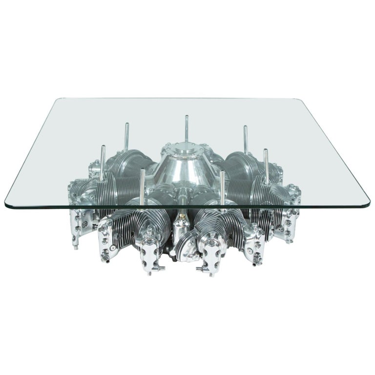 Engine block coffee table (time lapse). Radial engine coffee table fashioned from a wwii vintage jacobs r755 radial engine, the coffee table is a finely detailed example of an art deco radial engine. Vintage airplane radial engine repurposed into a stunning coffee table in the usa by repurpose n motion. This maybe the first and only time that many of us will ever get genuinely excited about a coffee table. Metal glass table cylinder coffee table engine coffee table coffee and cocktail tables unusual design aviation decor table.